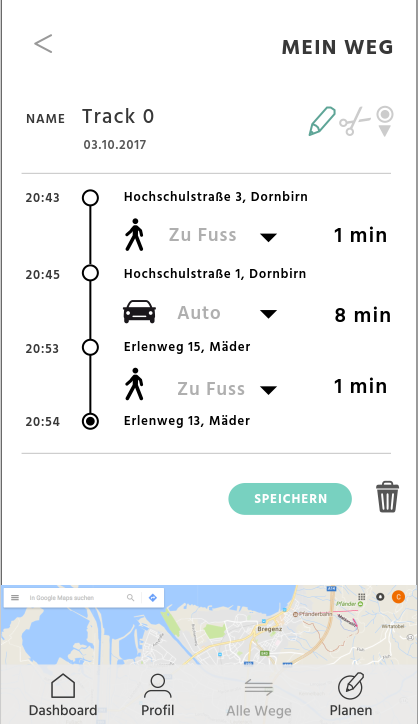 Im Rahmen des Interreg-Projektes Mobility Choices wurde eine App entwickelt, die auf Wunsch Wege der User aufzeichnet und dabei